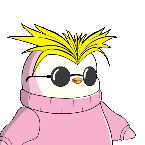 a cartoon penguin wearing sunglasses and a pink sweater with the words new post above it
