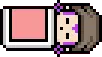 An animated pixel art sticker of Soda Sola, a woman in a purple dress and glasses, with a bouncy, jiggling movement.