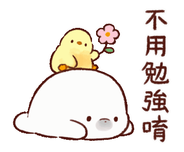 A cute yellow chick, Mofupiyo, sits atop a soft white seal, gently bouncing along in this adorable sticker.