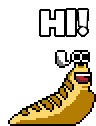 A pixel art Sol Slugs character, a banana slug with sunglasses, waves and says 'HI!' in this animated NFT sticker.
