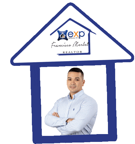 Francisco Merlet, a realtor with exp REALTY, smiles confidently within a house-shaped frame, representing real estate services.