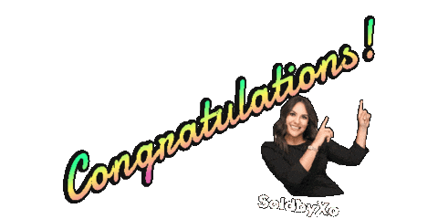 a congratulations sign with a woman in the background