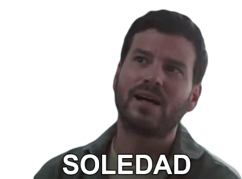 A man looks up with the word 'SOLEDAD' (Loneliness) on screen, referencing the band Taburete and feelings of isolation.
