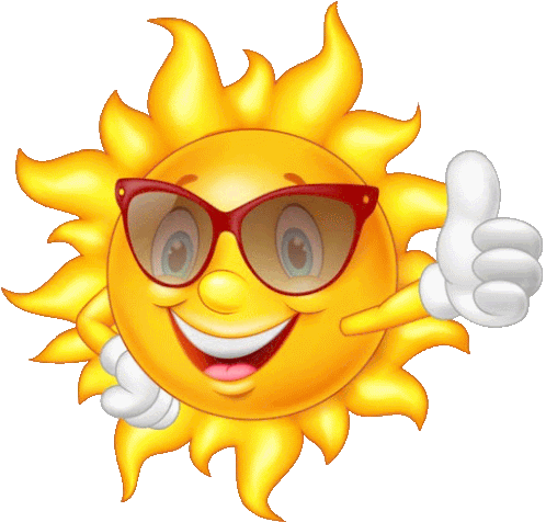 a cartoon sun wearing sunglasses and giving a thumbs up