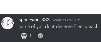 a message from spacewar_833 today at 2:53 pm some of yall dont deserve free speech 1