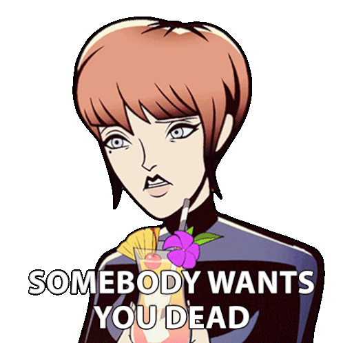 Cece Ryder from Agent Elvis sips a cocktail with a worried expression, displaying the caption 'Somebody Wants You Dead'.