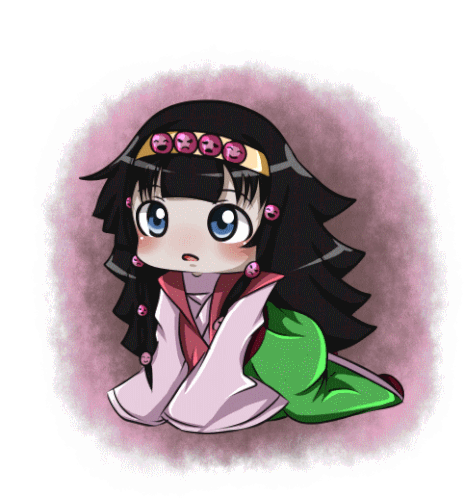 Cute chibi Alluka Zoldyck from Hunter x Hunter animated, showing various expressions from curious to happy.