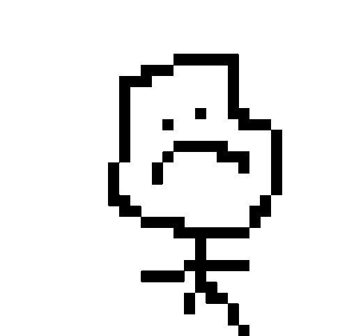 A pixelated stick figure cycles through various emotions and poses, from sad to surprised to happy and dancing.