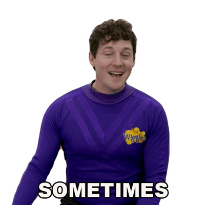 Lachy Gillespie from The Wiggles snaps his fingers and smiles, expressing 'Sometimes' with a playful gesture.