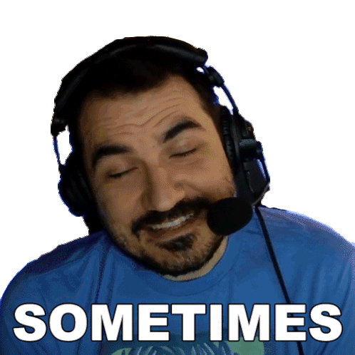 Octavian Morosan, also known as Kripparrian, wearing headphones and a blue shirt with 'Sometimes' written on it, nodding his head.