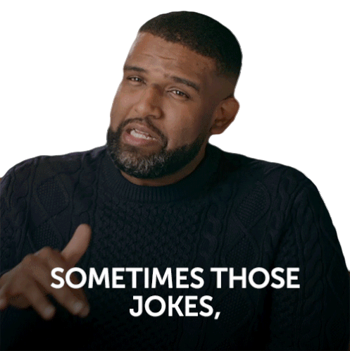 A man in a black sweater gestures while saying 'Sometimes those jokes did not hit,' conveying disappointment.