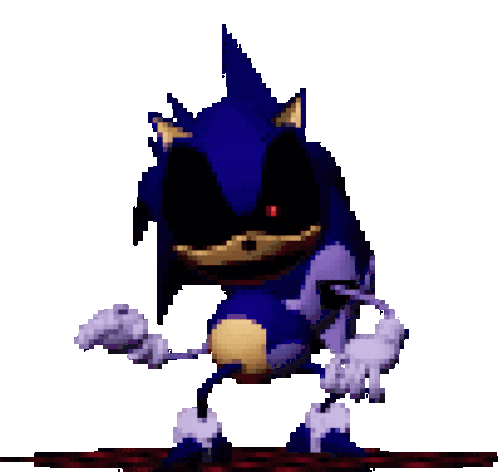 A pixel art animation of Majin Sonic from Sonic.exe, featuring his iconic down pose and fused appearance.
