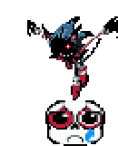 A pixel art sticker featuring Sonic Exe and Psychopath Sans, a character from Undertale, with a sad expression.