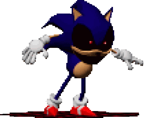 A pixel art animated sticker of Sonic Exe in a right pose, featuring his distinctive red eyes and shoes, from FNF.
