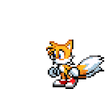 A pixel art animation of Tails, the two-tailed fox from Sonic, spinning rapidly with a trail behind him.