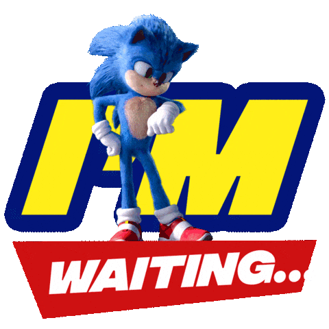 Sonic The Hedgehog 2 stands impatiently on a 'WAITING..' banner, shifting his weight in this animated sticker.