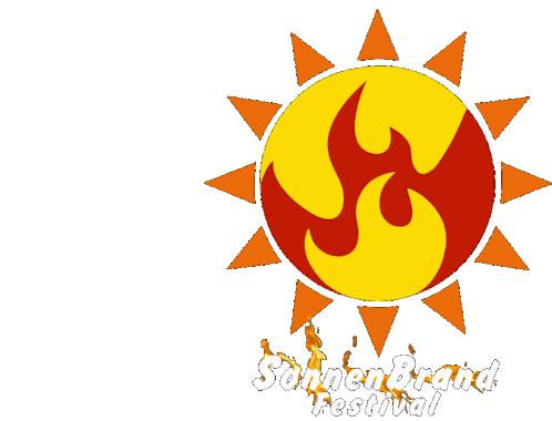Animated sticker featuring the Sonnenbrand Festival logo: a fiery sun with flames and the festival name. Perfect for summer events.