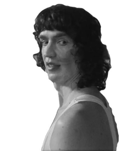 Dora displays a diabolical smile and unsettling gaze, looking over her shoulder in this black and white animated sticker.