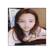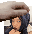 K-pop idol Soojin from Gidle receives a playful head pat from a large, pixelated hand in this fun animated sticker.