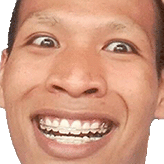 Sopon's face with exaggerated wide eyes and a big smile, showing braces, conveying excitement or surprise.