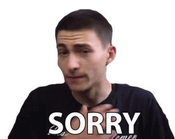 Jack Cole expresses apology with a hand on his chest, wearing a black shirt with 'SORRY' written on it.