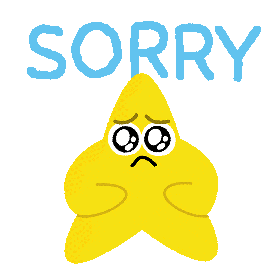 A sad yellow star character with big eyes and a tear apologetically says 'SORRY' in this animated sticker.