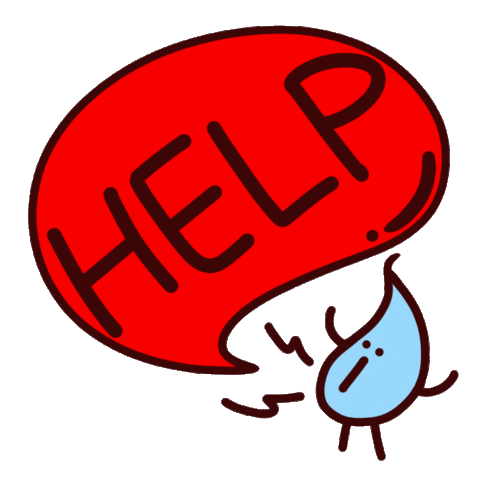 A cute blue character with a speech bubble and an Among Us crewmate pressing the emergency report button.