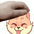 A gentle hand lovingly pets the head of Soy Dany, a cute striped cartoon cat, showing affection.