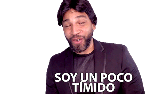 Henry Santos gestures while saying "Soy un poco tímido" (I'm a little shy), expressing shyness or modesty.