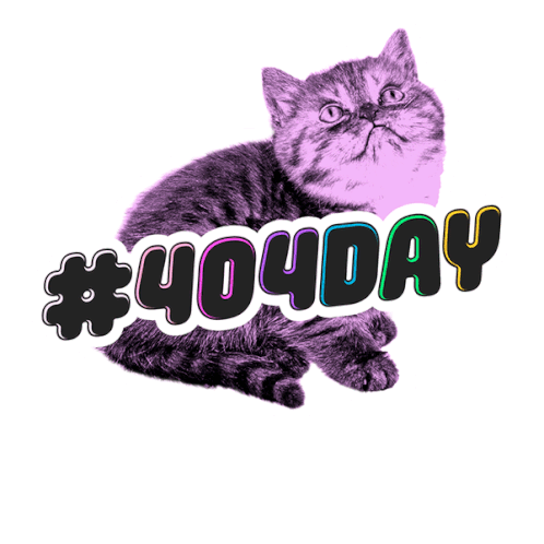 A cute purple cat with glowing eyes sits, featuring the vibrant '#404DAY' text and lofi aesthetic.