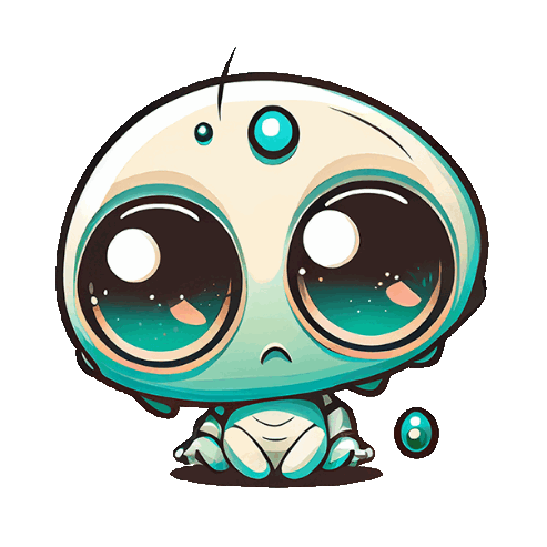 An adorable, big-eyed space alien sticker with a light blue and white body, featuring a slightly sad expression.
