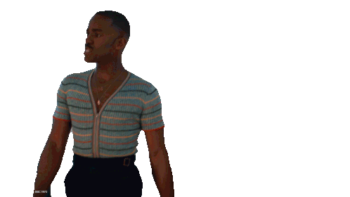 Ncuti Gatwa, as the Doctor, smiles and gestures as the text 'SPACE BABIES.' appears, from Doctor Who.