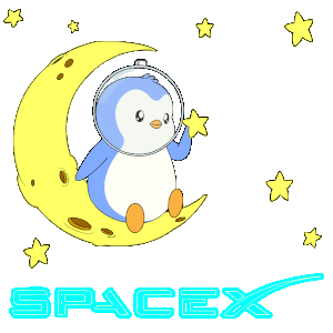 A cute penguin astronaut sits on a crescent moon, surrounded by stars, with the iconic SpaceX logo.