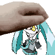 A hand holds the iconic character Spamton from the game Deltarune, featuring his blue hair and hat.