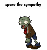 A Plants vs. Zombies zombie character with its tongue out, accompanied by the text 'spare the sympathy'.