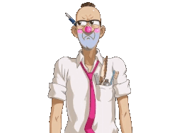 Spark Brushel from Ace Attorney, a bald man with glasses, pink nose, and blue beard, animated as a sticker.