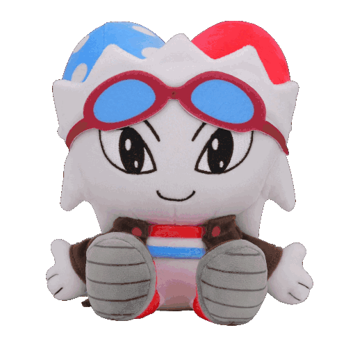 Spark The Electric Jester Wind Jester plush toy, wearing goggles and a striped shirt, spins energetically.