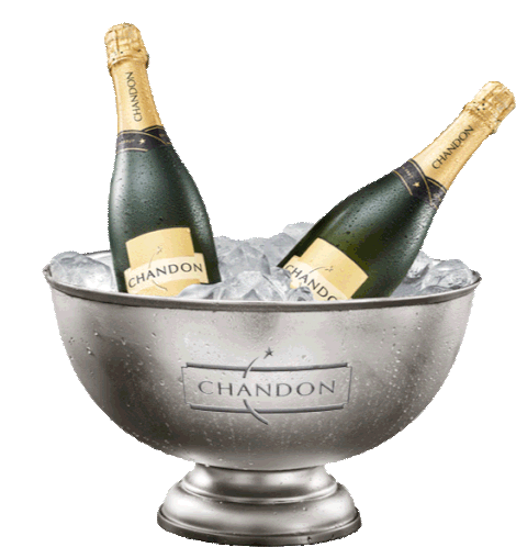 Two elegant Chandon champagne bottles are chilling in a silver ice bucket, ready for a celebration.