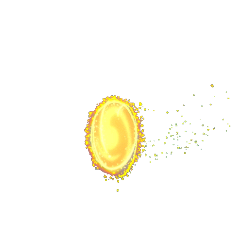 A vibrant, sparkling, and spinning yellow-orange orb with radiating particles, resembling a magical star or wish.
