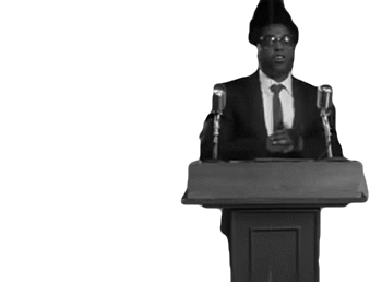 Malcolm X delivers a powerful and passionate speech from a podium, gesturing emphatically with his hands.