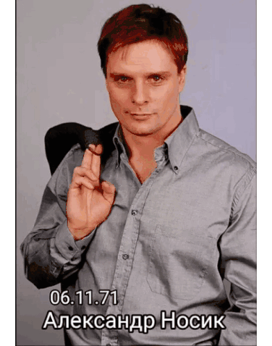 a man in a grey shirt has the date 06.11.71 on the bottom right