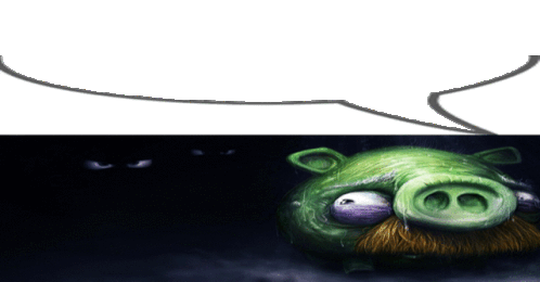 a green pig with a beard and a speech bubble in the background