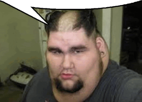 a man with a beard and a bald head has a speech bubble over his head