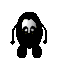 Pixel art character Speedy Eggbert (Blupi) melts and burns into a smoking pile of ash, depicting a "die" or "cringe" reaction.