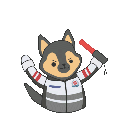 A cheerful cartoon SPF dog in uniform holds a red wand, encouraging drivers with the message "DRIVE SAFELY!".