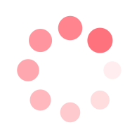 A smooth animation of a circular loading spinner with fading pink dots, indicating a process is underway.