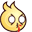 A blurry yellow cartoon character with large eyes violently spits and pukes a stream of red blood.