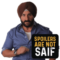 Saif Ali Khan makes a 'shhh' gesture, warning that "Spoilers Are Not Saif" (safe), referencing his role.