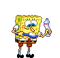 Spongebob Squarepants brushes his teeth with toothpaste, rinses, and smiles brightly with sparkling clean teeth.