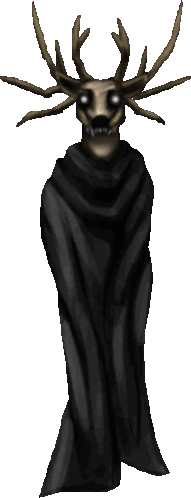 The ominous Deer Lord, also known as Specimen 8, from Spooky's Jump Scare Mansion, depicted with antlers and a black cape.